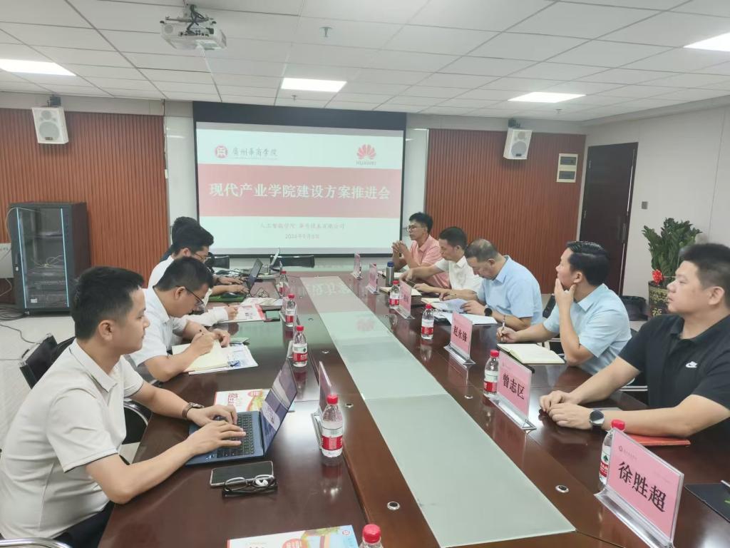 2138cc太阳集团为了进一步推进与华为公司的深度校企合作、产教融合,2024年9月5日下午就华为现代产业学院如何建设、如何在我校落地进行了深入的研讨和交流,推进了华为现代产业建设项目。
