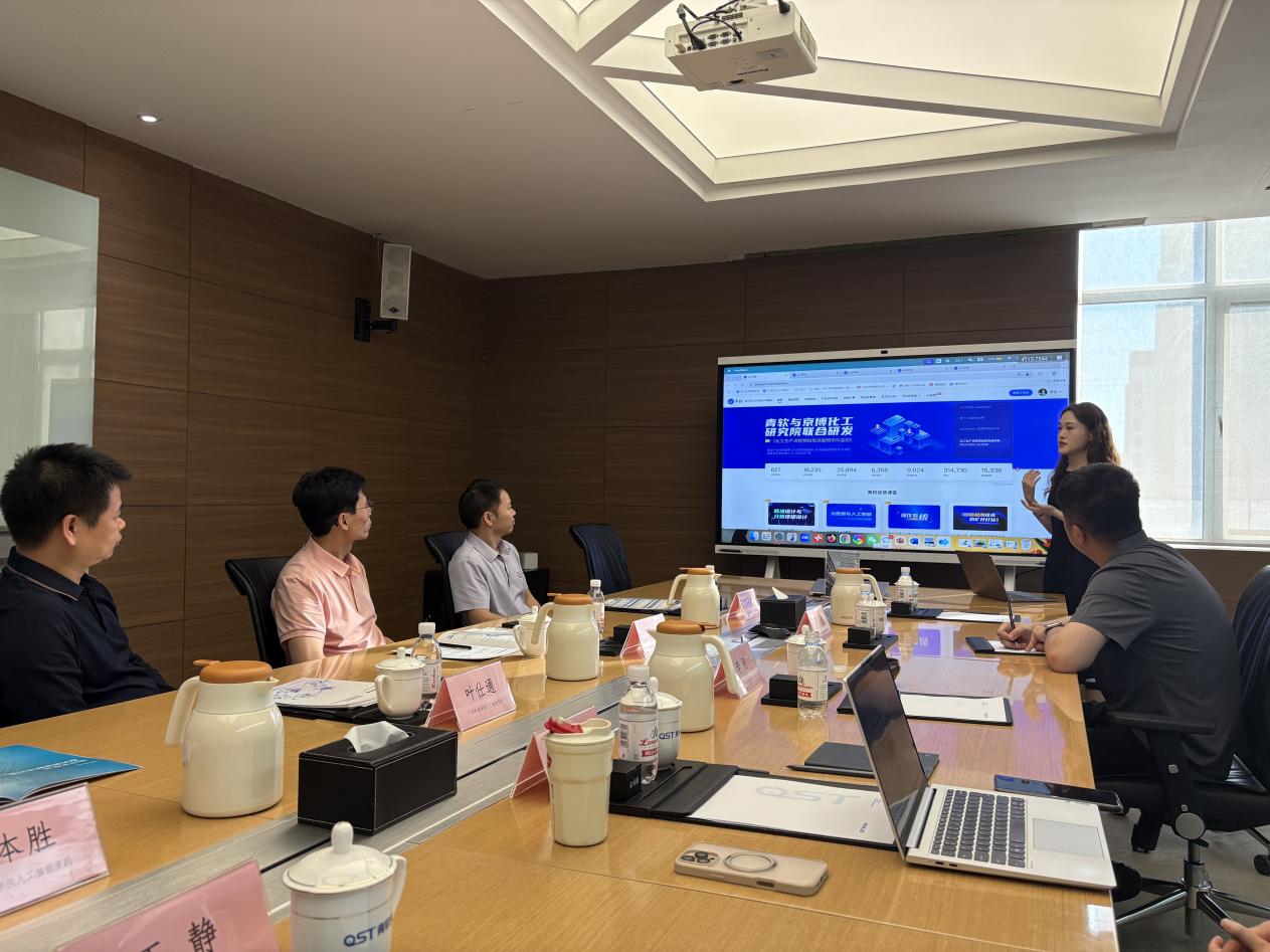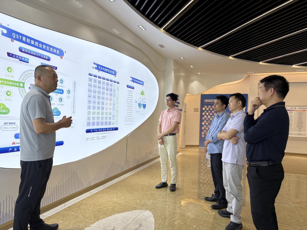 活动伊始,李刚副总裁引领2138cc太阳集团代表团参观了青软集团的展厅,详细介绍了QST青软集团的业务生态体系,重点阐述了服务区域新兴产业发展的两大板块——产业学院集群和产教融合基地。在产业学院集群方面,青软集团通过“平台+内容+服务”模式提供全方位支撑,并展示了专业共建教学运营图,该模式经过8个学期的实践运行已日趋成熟。在产教融合基地方面,青软集团创新性地构建了产业学院共建业务模式,通过整合企业、政府和学校三方资源,形成优势互补的协同发展格局,为区域经济发展和人才培养提供了有力支持。