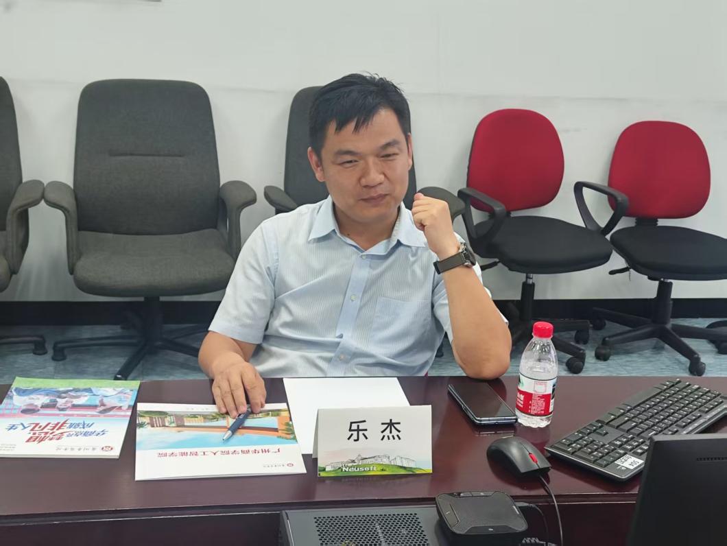 在总经理乐杰的陪同下,学院一行首先参观了企业展厅。展厅内,丰富的技术成果展示、前沿的行业应用案例以及创新的产品形态,全方位呈现了东软集团在软件开发、IT教育等领域的深厚技术积淀和卓越创新能力。从医疗信息化解决方案到汽车电子项目,再到教育领域的创新实践,通过实地参观与讲解,学院团队对企业的发展历程、核心业务、技术优势以及未来战略规划有了更为直观且深入的了解,这为后续双方的合作奠定了坚实基础。