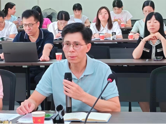 首先开展了第一议题的学习,由学院党委书记杨波领学。杨书记传达了“广东省教育厅关于学校安全维稳暨爱国卫生工作视频调度会”的会议精神,强调校园安全是学院发展的“生命线”。总结指出,当前国际国内形势复杂,高校成为意识形态斗争的前沿阵地,必须严把政治安全关:一是加强人才引进政治审查,对高层次人才及中层干部的师德师风、政治立场进行深度核查,杜绝“带病入职”;二是强化假期安全管理,要求学工部门全面排查宿舍、教学楼消防隐患,严格管控留校学生及外籍教师进出,落实防火、防溺水、交通安全等措施;三是“两热”疫情防控,倡导全员开展爱国卫生大扫除活动;四是网络诈骗高发等问题,要求辅导员深入宿舍,建立“班级—年级—学院”三级预警机制。他要求以班级为单位开展反诈教育,结合典型案例制作警示材料,同时也要加强心理健康筛查,对重点人群实施“一对一”帮扶,筑牢校园安全“防火墙”。
